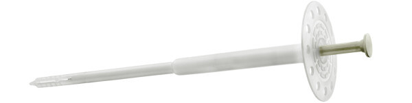 Certificiran udarni vložek za montažo izolacijskih plošč v beton in zidove. Z udarcem kladiva plastičnega žeblja, z na koncu