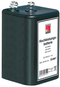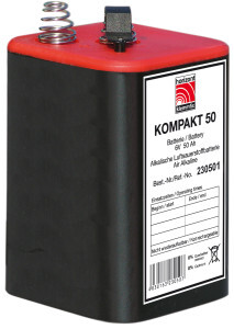 Cink-ogljikova-baterija brez živega srebra in kadmija, srednje energijske vrednosti. Dolga življenjska doba, in dolga doba skladiščenja. Število obratovalnih ur pri temperaturi 20 °C: trajna svetloba: do 180 ur, pri utripanju: do 720 ur.