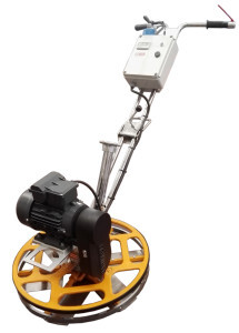 Električna gladilka s stabilizacijskim obročem in zložljivim vodilnim ročajem. Posebej zasnovan za delo v vogalih. Tehnične specifikacije: premer 600 mm, elektromotor 230 V, 50 Hz, vrtenje gladilne plošče 130 vrt / min.